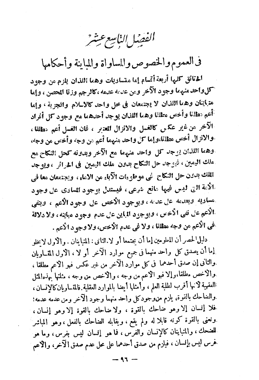 الفصل التاسع عشر في العموم والخصوص والمساواة والمباينة وأحكامها