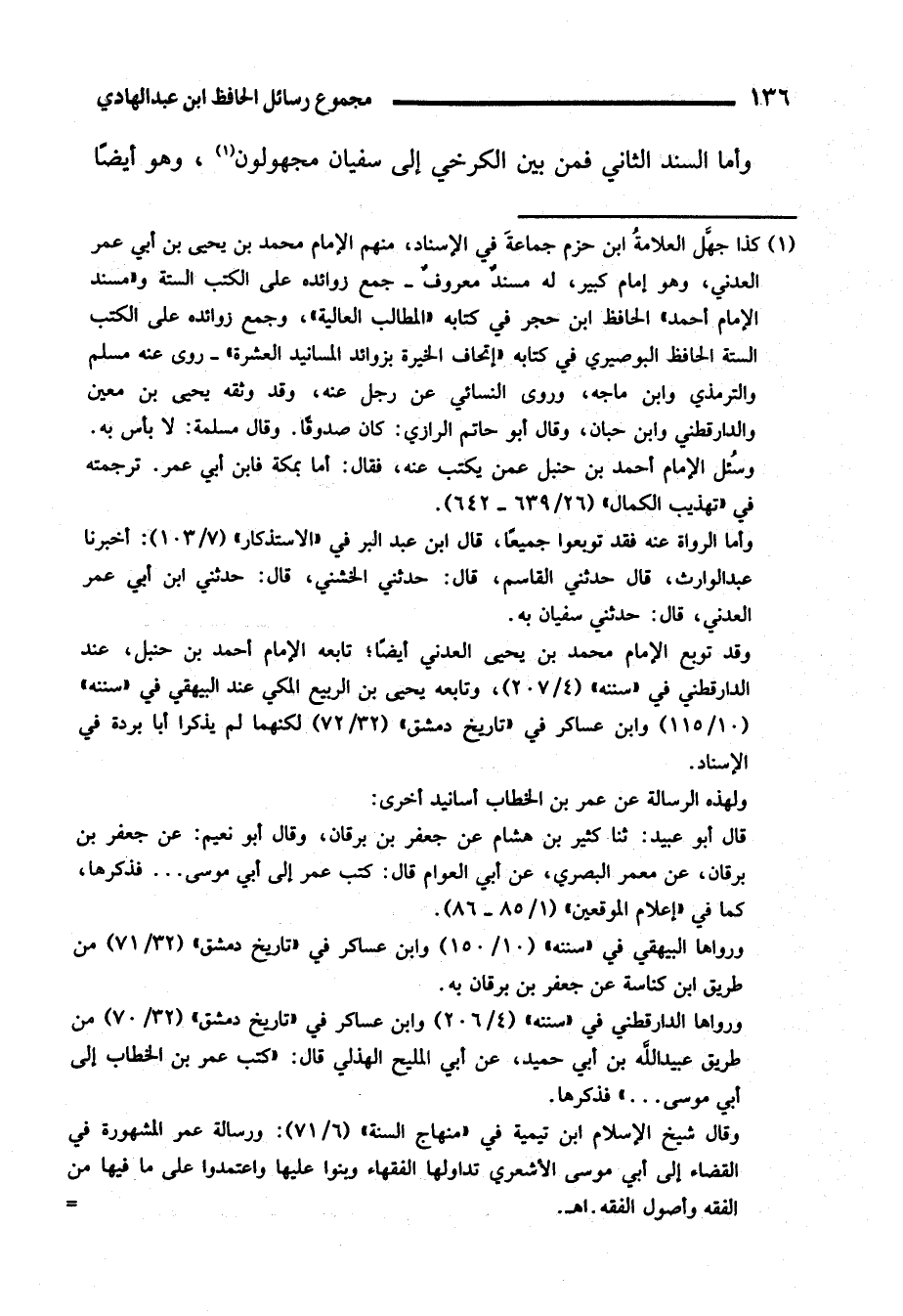 (¬1) كذا جهَّل العلامةُ ابن حزم جماعةَ في الإسناد، منهم الإمام محمد بن يحيى بن أبي عمر العدني، وهو إمام كبير، له مسندٌ معروفٌ - جمع روائده على الكتب الستة و"مسند الإمام أحمد" الحافظ ابن حجر في كتابه "المطالب العالية" وجمع زوائده على الكتب الستة الحافظ البوصيري في كتابه "إتحاف الخيرة بزوائد المسانيد العشرة" - روى عنه مسلم والترمذي وابن ماجه، وروى النسائي عن رجل عنه، وقد وثقه يحيى بن معين والدارقطني وابن حبان، وقال أبو حاتم الرازي: كان صدوقًا. وقال مسلمة: لا بأس به. وسُئل الإمام أحمد بن حنبل عمن يكتب عنه، فقال: أما بمكة فابن أبي عمر. ترجمته في "تهذيب الكمال" (26/ 639 - 642).