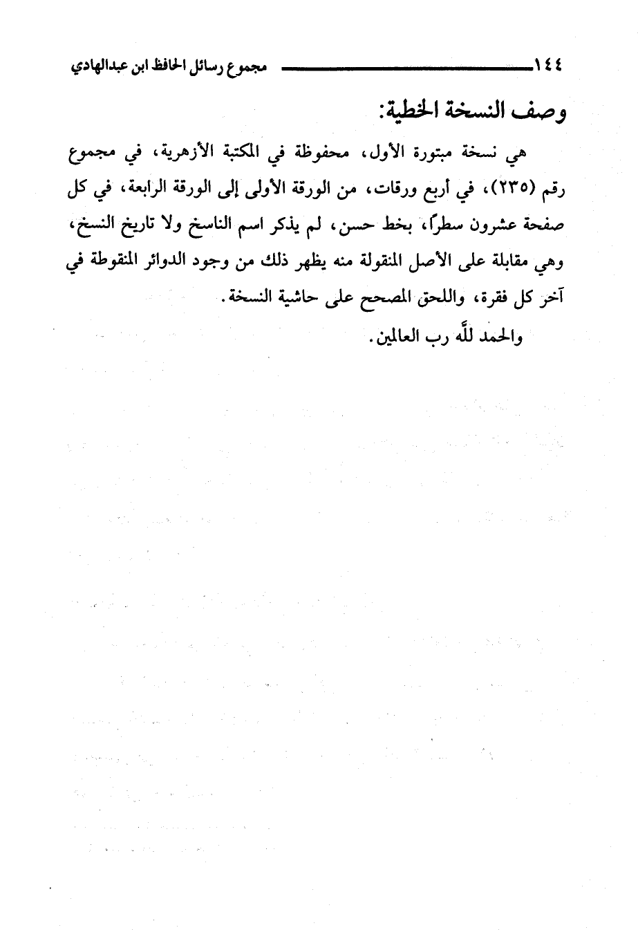 وصف النسخة الخطية: