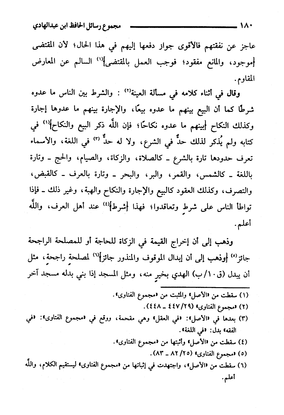 (¬6) سقطت من "الأصل" واجتهدت في إثباتها من "مجموع الفتاوى" ليستقيم الكلام، والله أعلم.