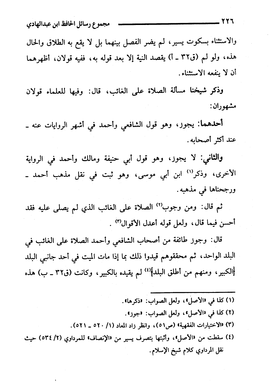 (¬4) سقطت من "الأصل" وأثبتها بتصرف يسير من "الإنصاف" للمرداوي (2/ 534) حيث نقل المرداوي كلام شيخ الإسلام.
