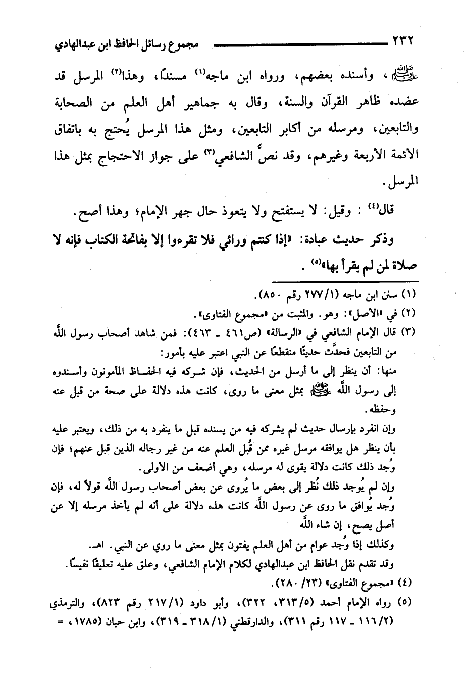 وقد تقدم نقل الحافظ ابن عبد الهادي لكلام الإمام الشافعي، وعلق عليه تعليقًا نفيساً.