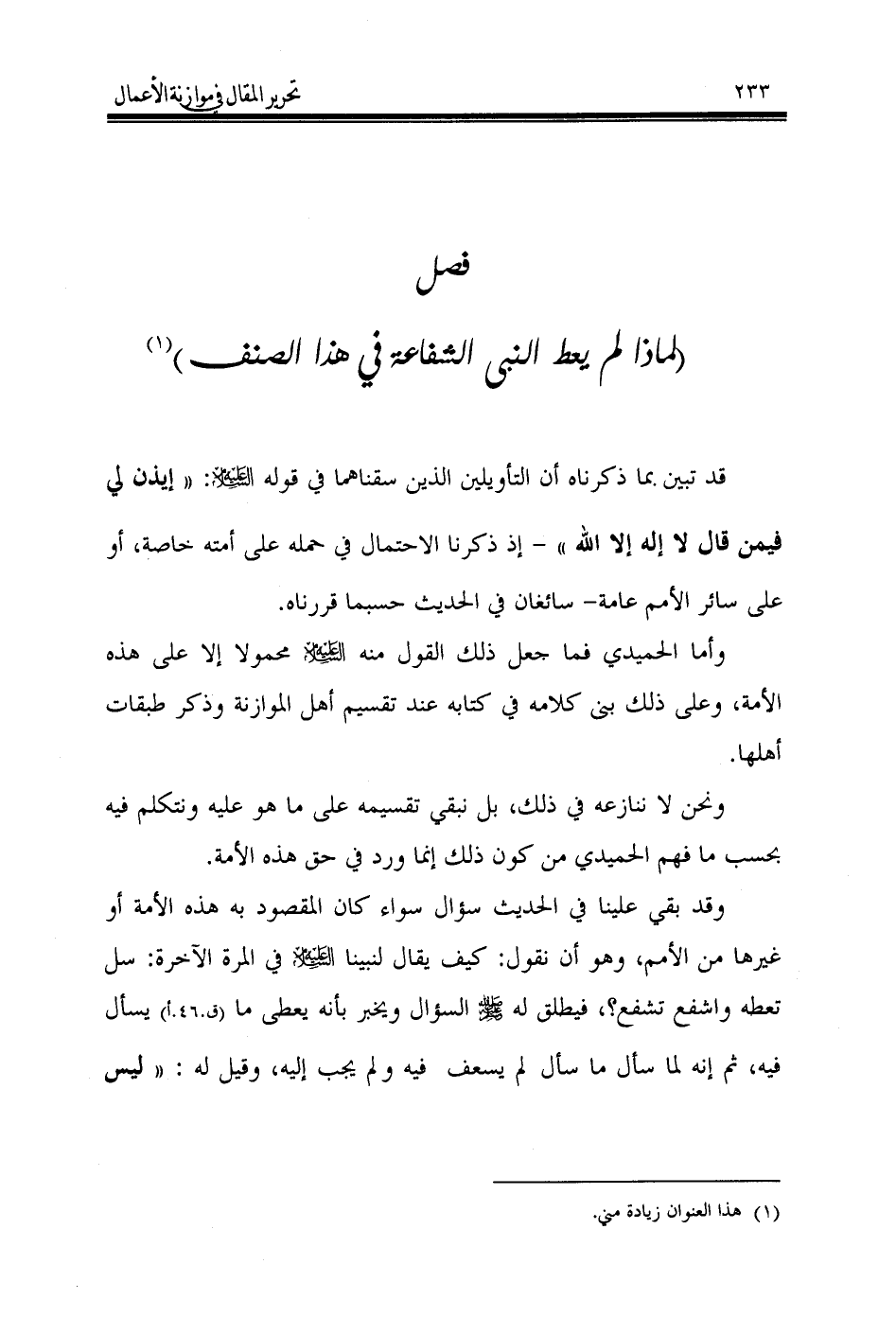 (لماذا لم يعط النبي الشفاعة في هذا الصنف) (¬1)