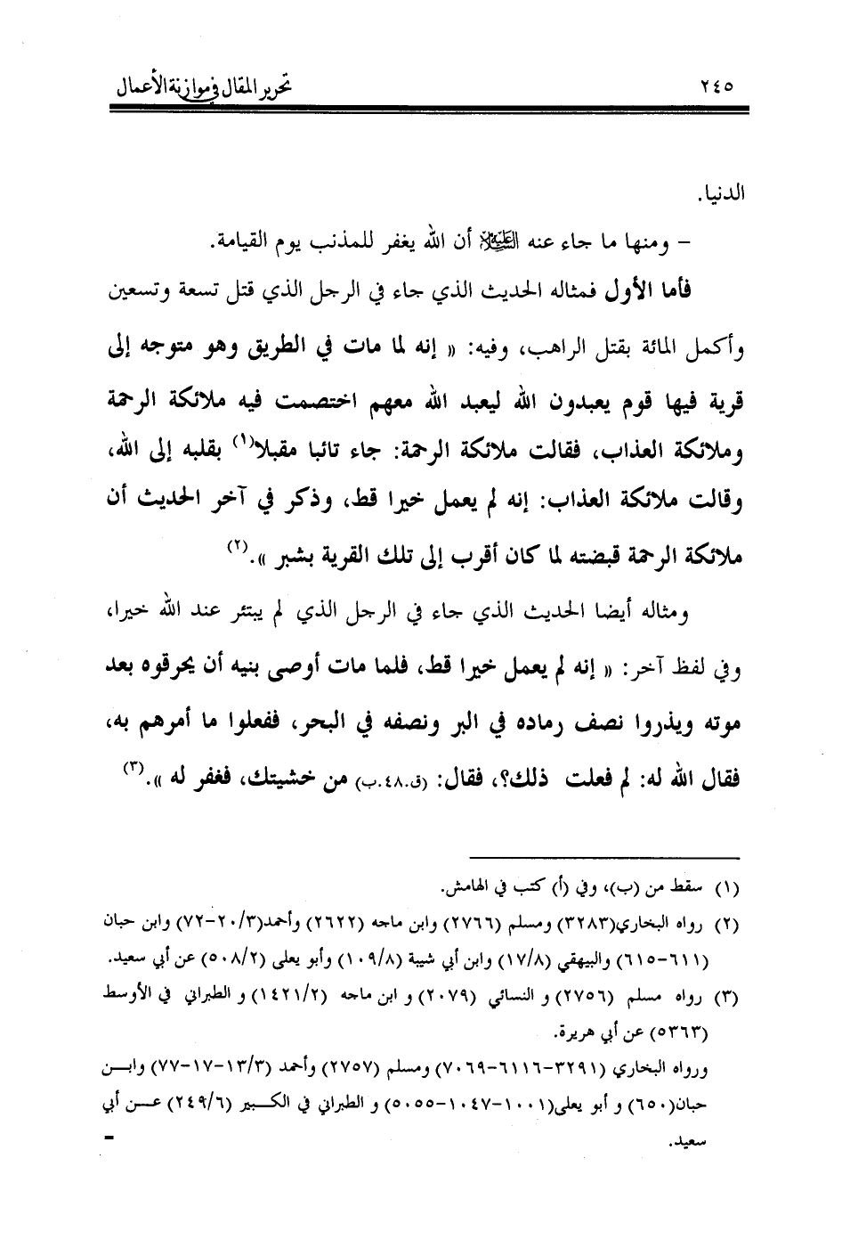 (¬2) رواه البخاري (3283) ومسلم (2766) وابن ماجه (2622) وأحمد (3/ 20 - 72) وابن حبان (611 - 615) والبيهقي (8/ 17) وابن أبي شيبة (8/ 109) وأبو يعلى (2/ 508) عن أبي سعيد.