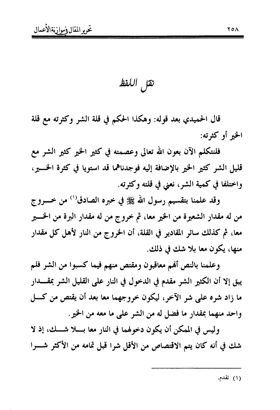 قال الحميدي بعد قوله: وهكذا الحكم في قلة الشر وكثرته مع قلة الخير أو كثرته: