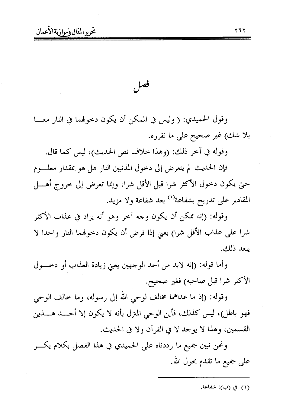 ونحن نبين جميع ما رددناه على الحميدي في هذا الفصل بكلام يكر على جميع ما تقدم بحول الله.