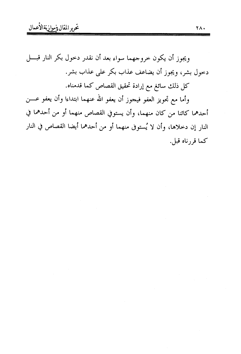 وأما مع تجويز العفو فيجوز أن يعفو الله عنهما ابتداءا وأن يعفو عن أحدهما كائنا من كان منهما، وأن يستوفي القصاص منهما أو من أحدهما في النار إن دخلاها، وأن لا يُستوفى منهما أو من أحدهما أيضا القصاص في النار كما قررناه قبل.