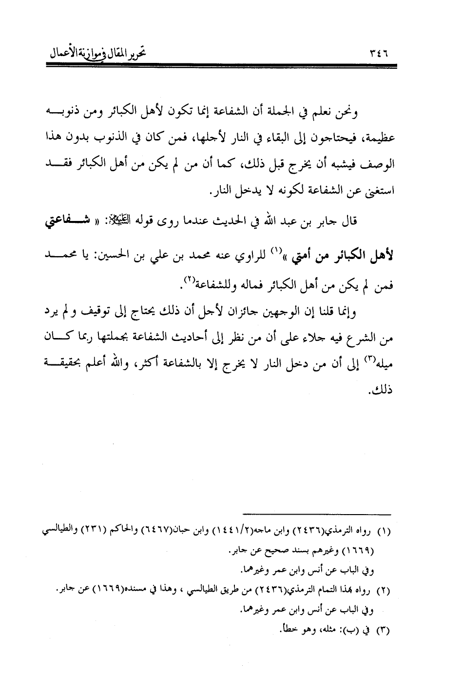 كتاب تحرير المقال في موازنة الأعمال وحكم غير المكلفين في العقبى والمآل (اسم الجزء: 1)