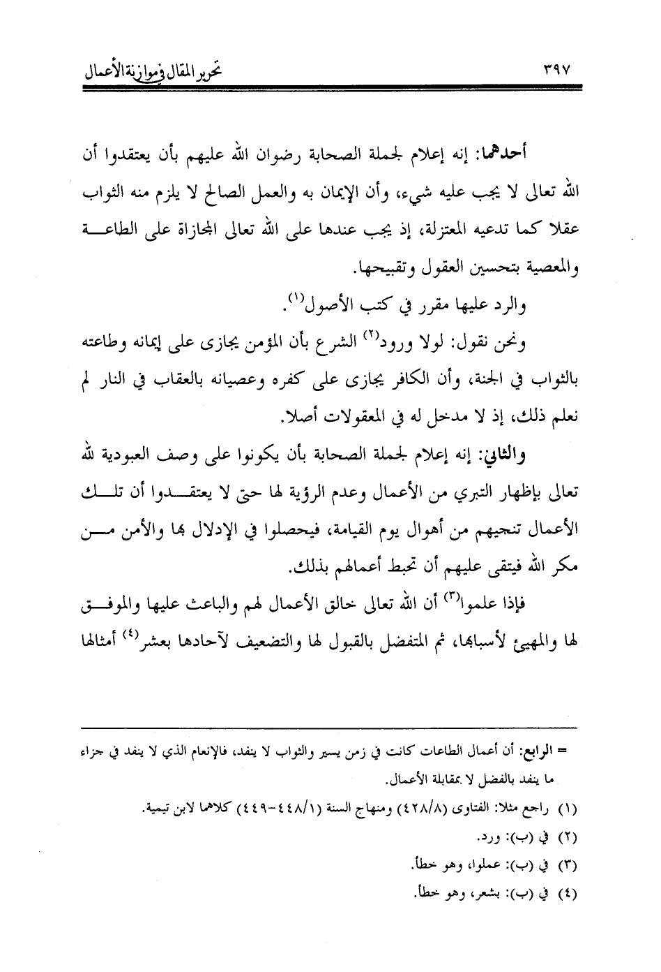 (¬1) راجع مثلا: الفتاوى (8/ 428) ومنهاج السنة (1/ 448 - 449) كلاهما لابن تيمية.