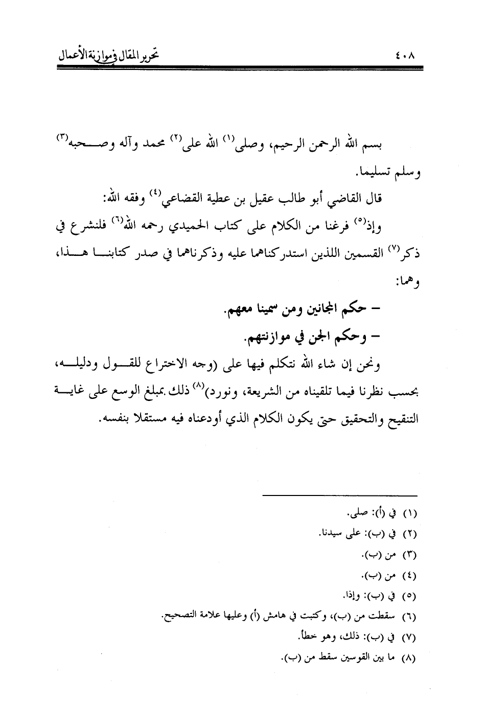 كتاب تحرير المقال في موازنة الأعمال وحكم غير المكلفين في العقبى والمآل (اسم الجزء: 1)