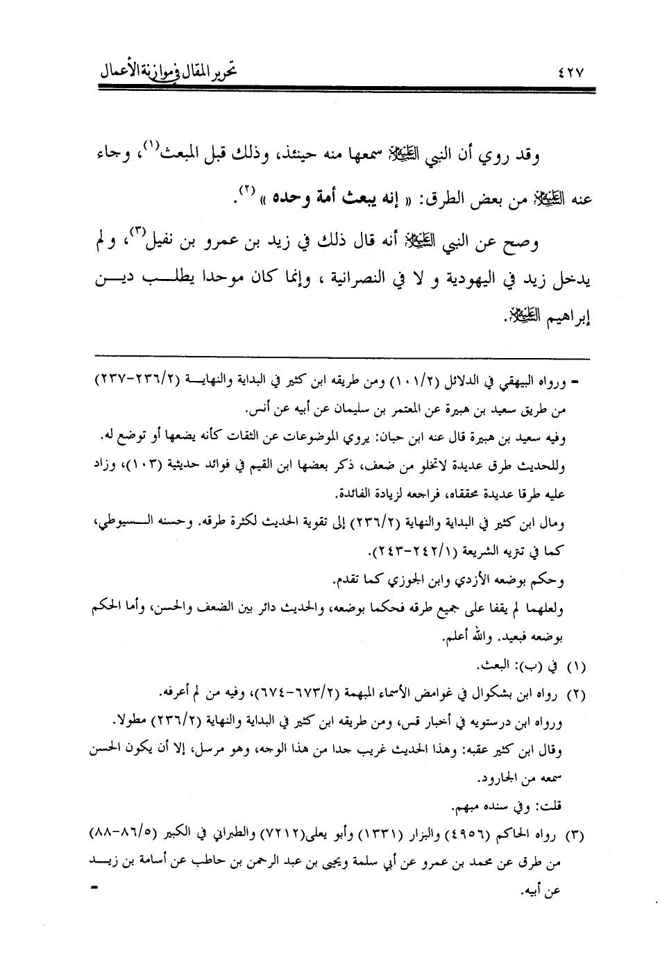 وصح عن النبي - عليه السلام - أنه قال ذلك في زيد بن عمرو بن نفيل (¬3)،
