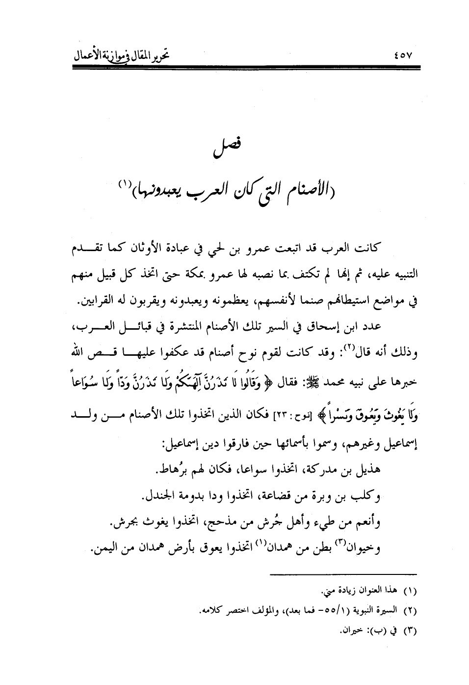 (الأصنام التي كان العرب يعبدونها) (¬1)