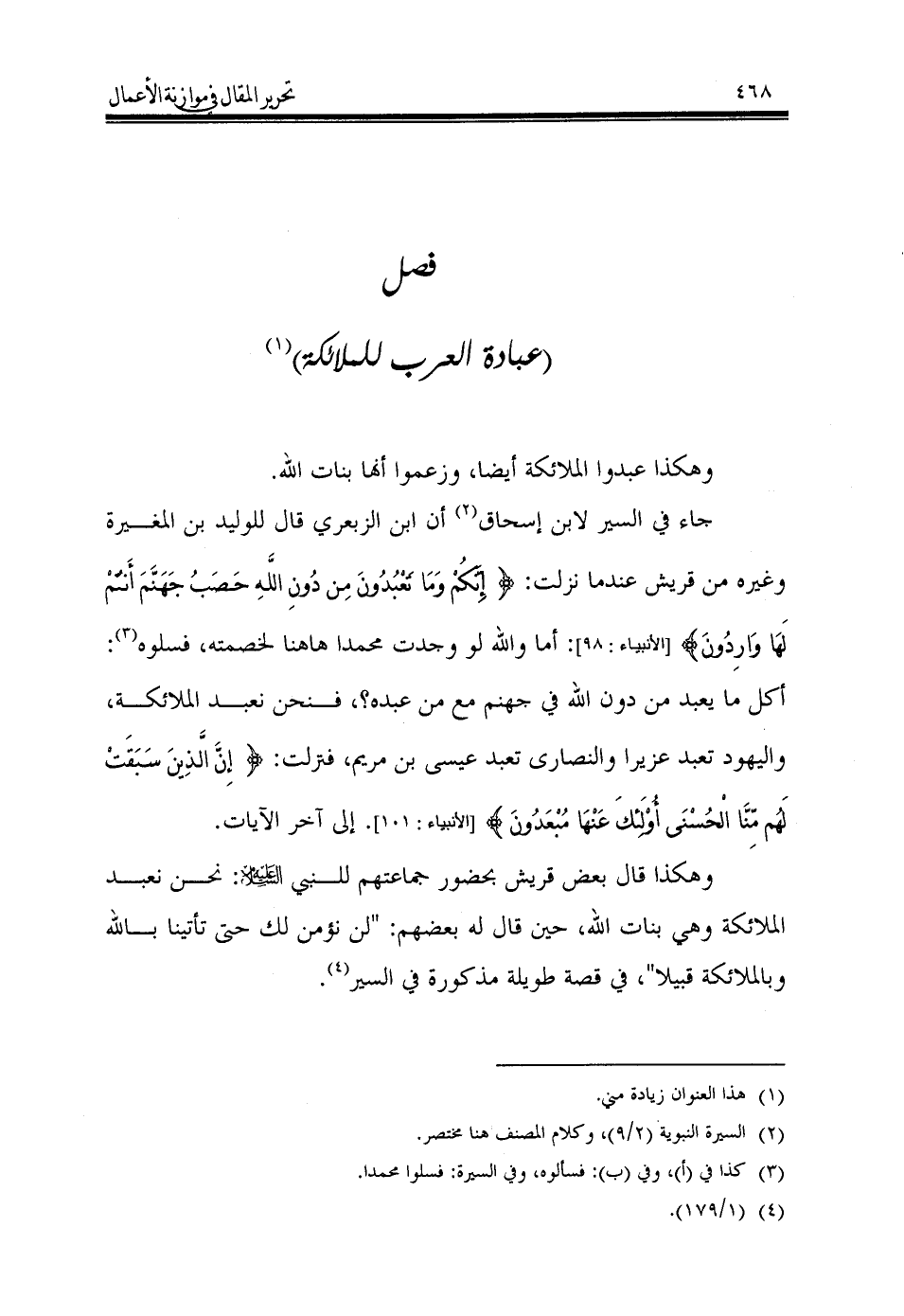 (عبادة العرب للملائكة) (¬1)