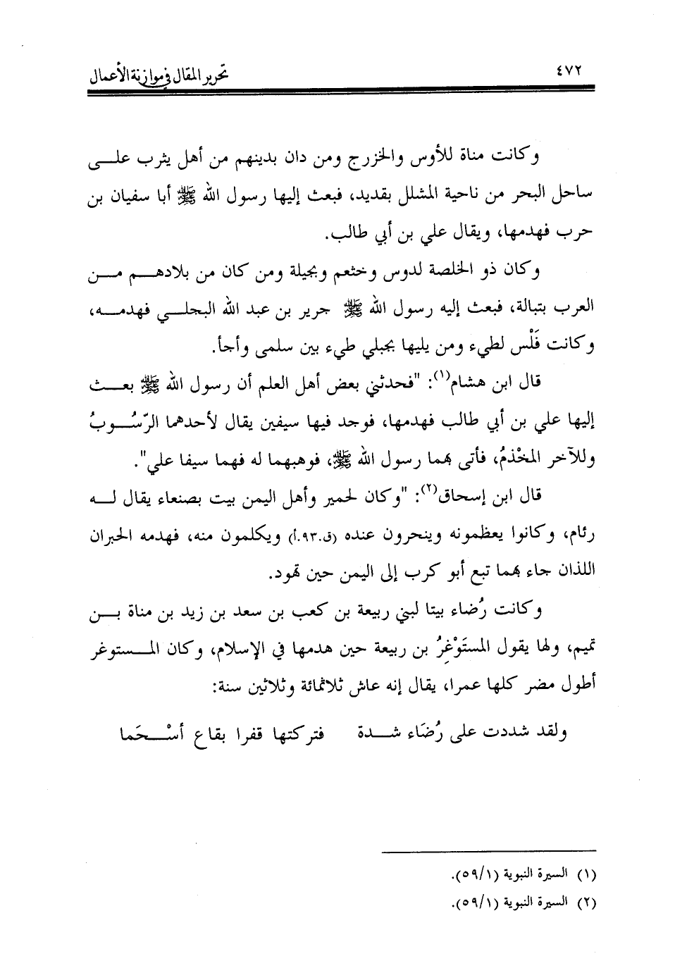 قال ابن هشام (¬1): "فحدثني بعض أهل العلم أن رسول الله - صَلَّى اللهُ عَلَيْهِ وَسَلَّمَ - بعث إليها علي بن أبي طالب فهدمها، فوجد فيها سيفين يقال لأحدهما الرّسُوبُ وللآخر المخْذمُ، فأتى بهما رسول الله - صَلَّى اللهُ عَلَيْهِ وَسَلَّمَ -، فوهبهما له فهما سيفا علي".