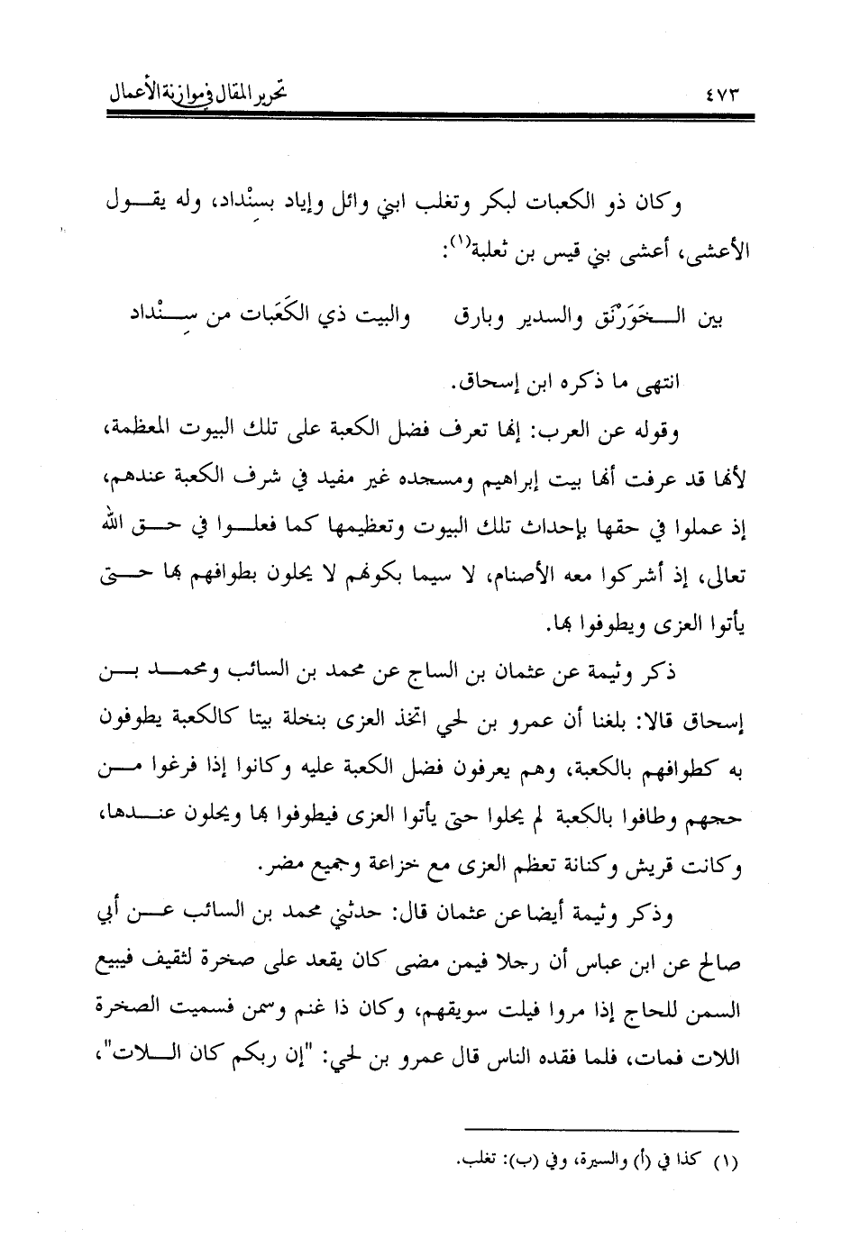وقوله عن العرب: إنها تعرف فضل الكعبة على تلك البيوت المعظمة، لأنها قد عرفت أنها بيت إبراهيم ومسجده غير مفيد في شرف الكعبة عندهم، إذ عملوا في حقها بإحداث تلك البيوت وتعظيمها كما فعلوا في حق الله تعالى، إذ أشركوا معه الأصنام، لا سيما بكونهم لا يحلون بطوافهم بها حتى يأتوا العزى ويطوفوا بها.