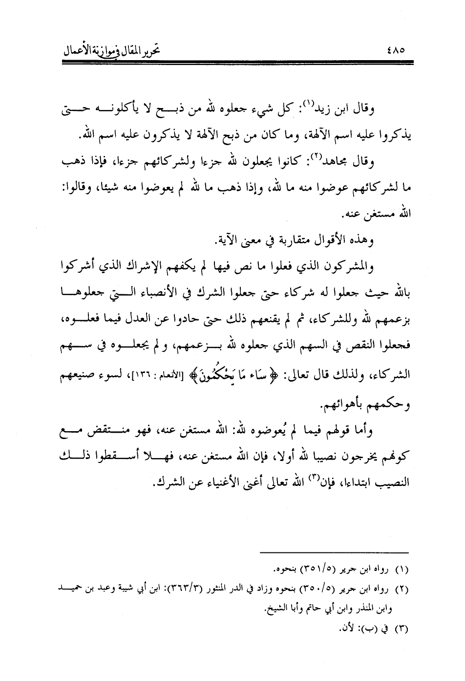 وقال ابن زيد (¬1): كل شيء جعلوه لله من ذبح لا يأكلونه حتى يذكروا عليه اسم الآلهة، وما كان من ذبح الآلهة لا يذكرون عليه اسم الله.