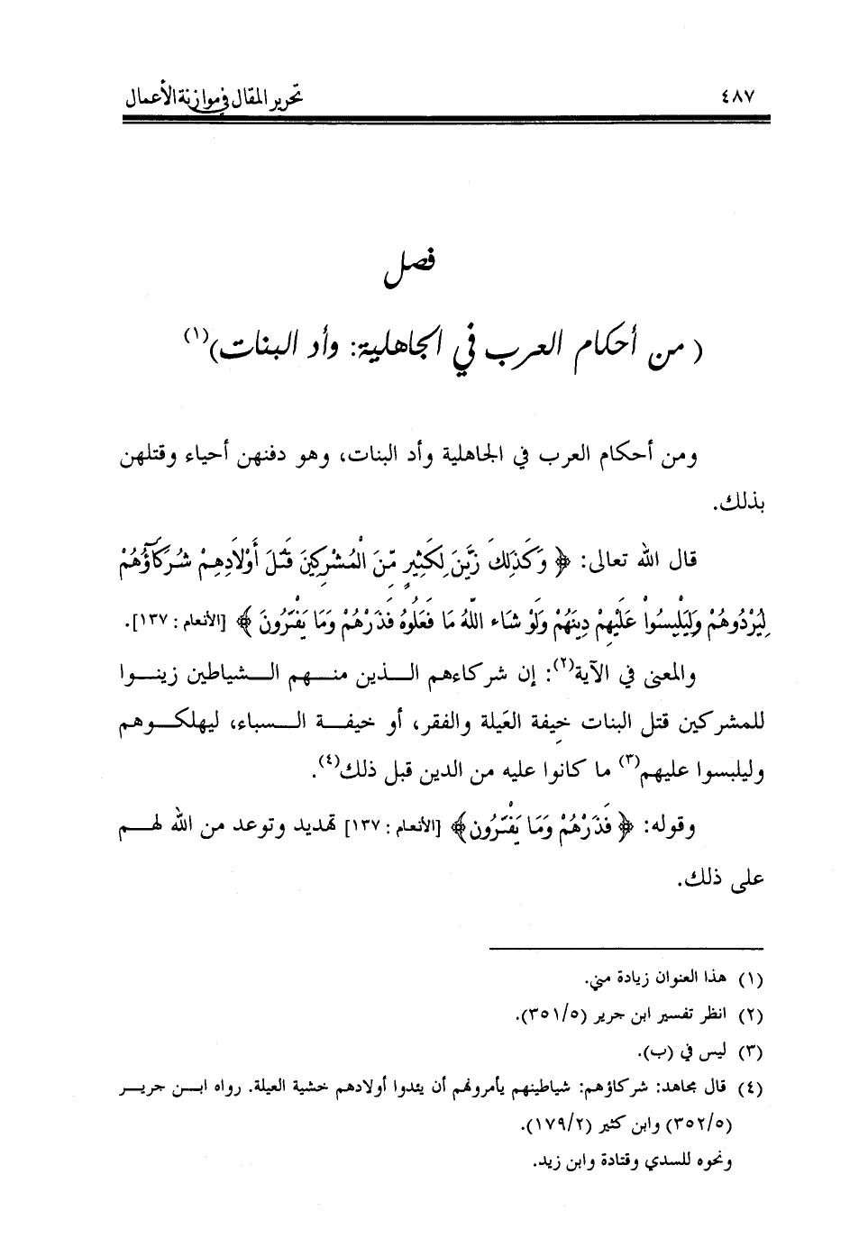 (من أحكام العرب في الجاهلية: وأد البنات) (¬1)