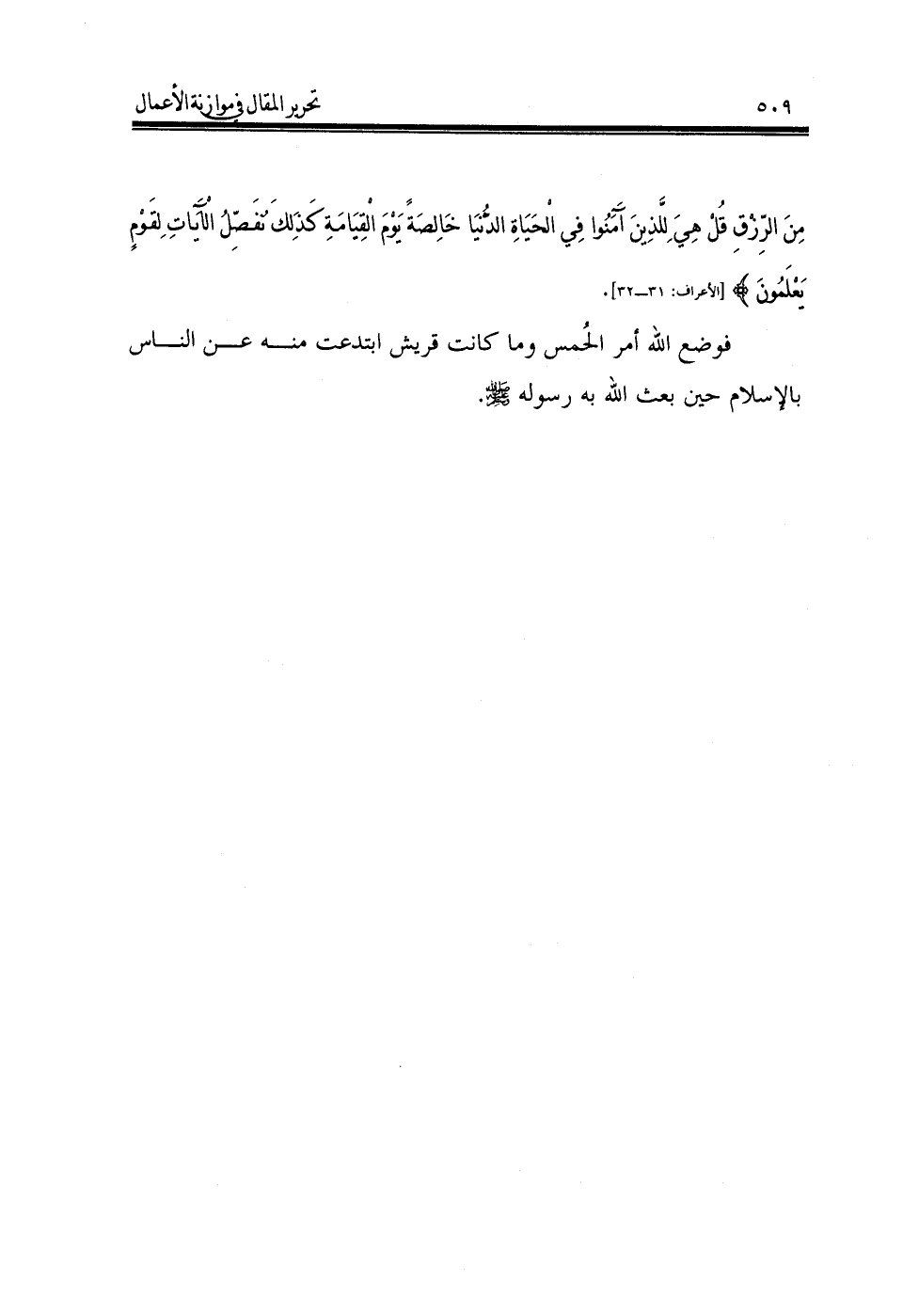 فوضع الله أمر الحُمس وما كانت قريش ابتدعت منه عن الناس بالإسلام حين بعث الله به رسوله - صَلَّى اللهُ عَلَيْهِ وَسَلَّمَ -.
