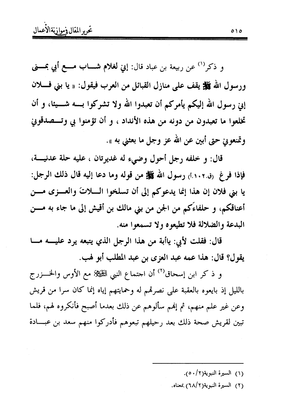 وذ كر ابن إسحاق (¬2) أن اجتماع النبي - عليه السلام - مع الأوس والخزرج بالليل إذ بايعوه بالعقبة على نصرتهم له وحمايتهم إياه إنما كان سرا من قريش وعن غير علم منهم، ثم إنهم سألوهم عن ذلك بعدما أصبح فأنكروه لهم، فلما تبين لقريش صحة ذلك بعد رحيلهم تبعوهم فأدركوا منهم سعد بن عبادة
