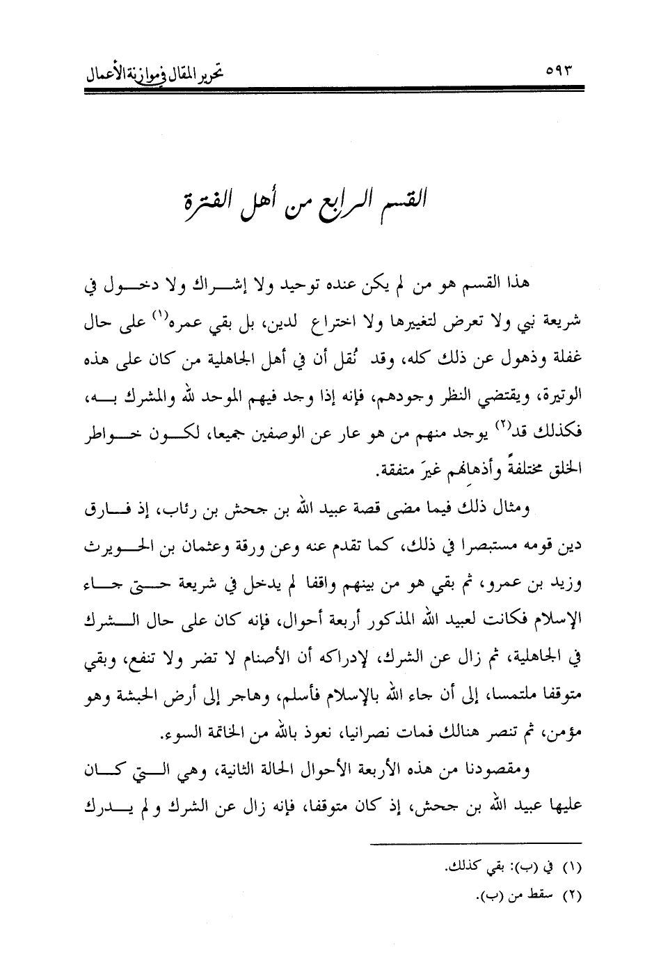 ومقصودنا من هذه الأربعة الأحوال الحالة الثانية، وهي التي كان عليها عبيد الله بن جحش، إذ كان متوقفا، فإنه زال عن الشرك ولم يدرك