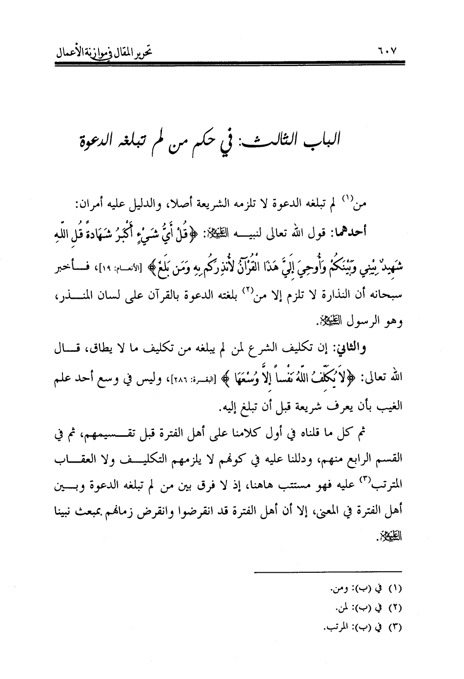 الباب الثالث: في حكم من لم تبلغه الدعوة