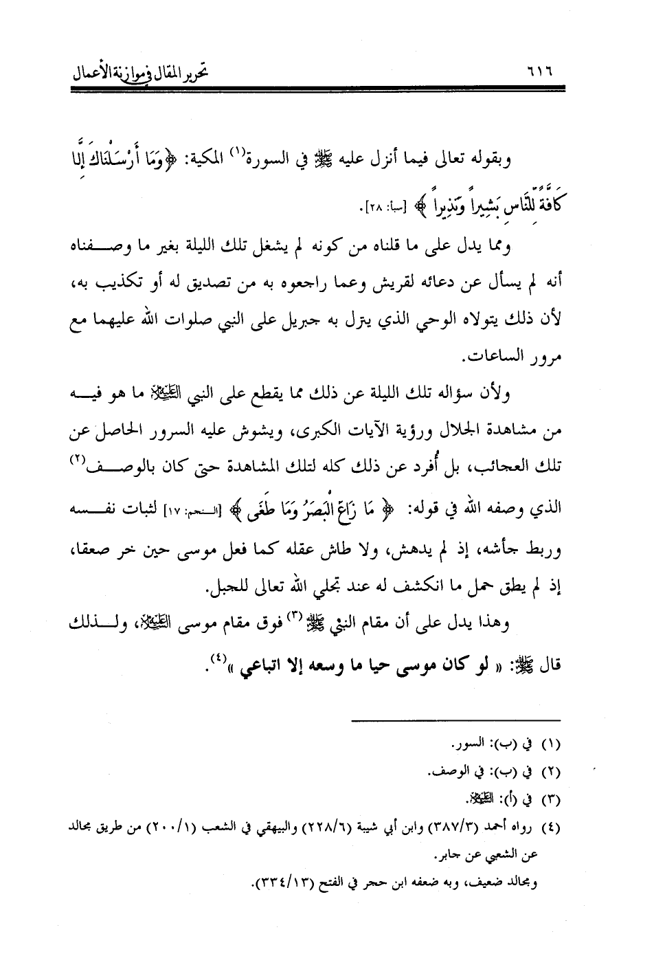 وهذا يدل على أن مقام النبي - صَلَّى اللهُ عَلَيْهِ وَسَلَّمَ - (¬3) فوق مقام موسى - عليه السلام -، ولذلك قال - صَلَّى اللهُ عَلَيْهِ وَسَلَّمَ -: «لو كان موسى حيا ما وسعه إلا اتباعي» (¬4).