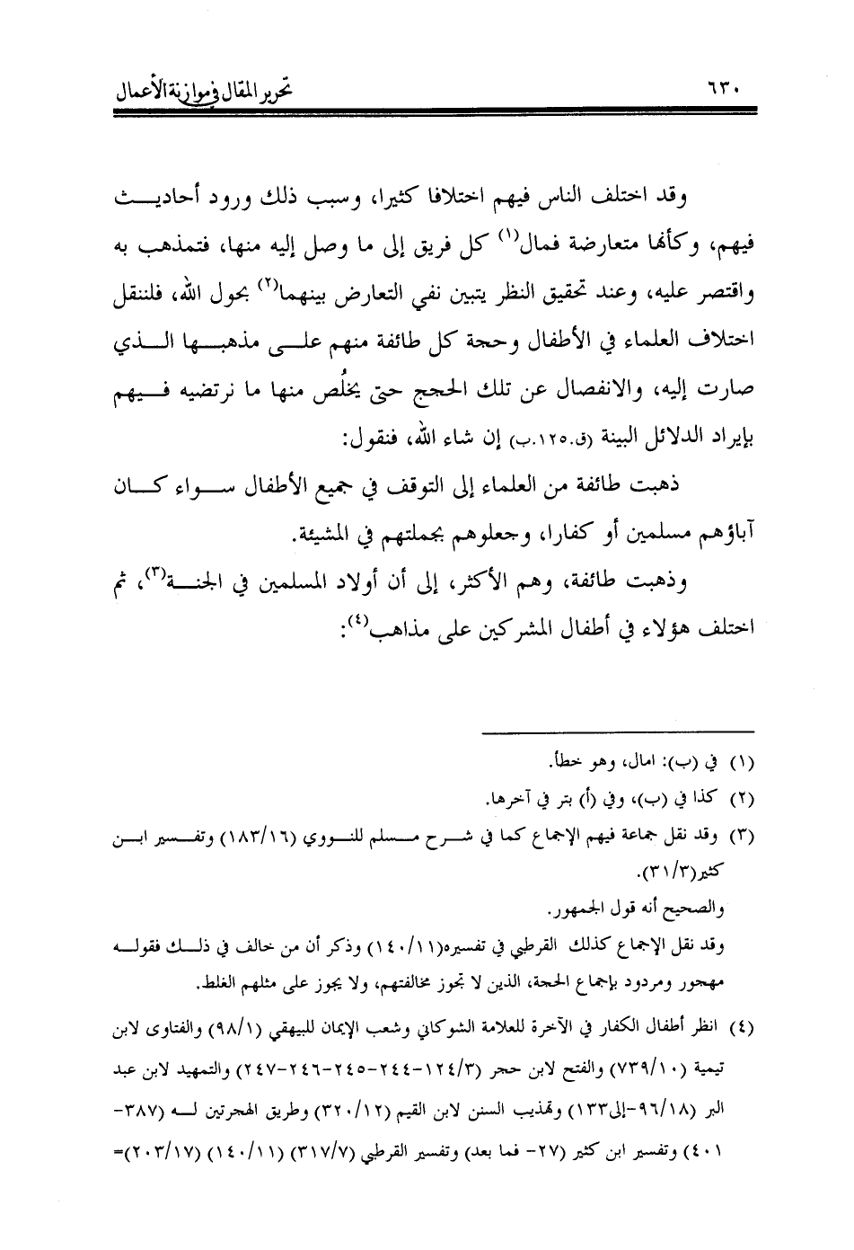 (¬4) انظر أطفال الكفار في الآخرة للعلامة الشوكاني وشعب الإيمان للبيهقي (1/ 98) والفتاوى لابن تيمية (10/ 739) والفتح لابن حجر (3/ 124 - 244 - 245 - 246 - 247) والتمهيد لابن عبد البر (18/ 96 - إلى133) وتهذيب السنن لابن القيم (12/ 320) وطريق الهجرتين له (387 - 401) وتفسير ابن كثير (27 - فما بعد) وتفسير القرطبي (7/ 317) (11/ 140) (17/ 203) = = (19/ 234) والتذكرة له (436) وشرح النووي على صحيح مسلم (12/ 50) (16/ 183) وفيض القدير (1/ 538) والفصل لابن حزم (3/ 60 - فما بعد).