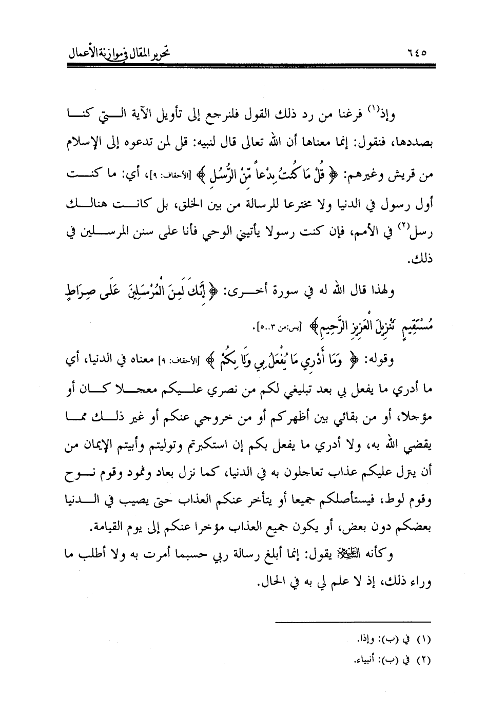 كتاب تحرير المقال في موازنة الأعمال وحكم غير المكلفين في العقبى والمآل (اسم الجزء: 2)