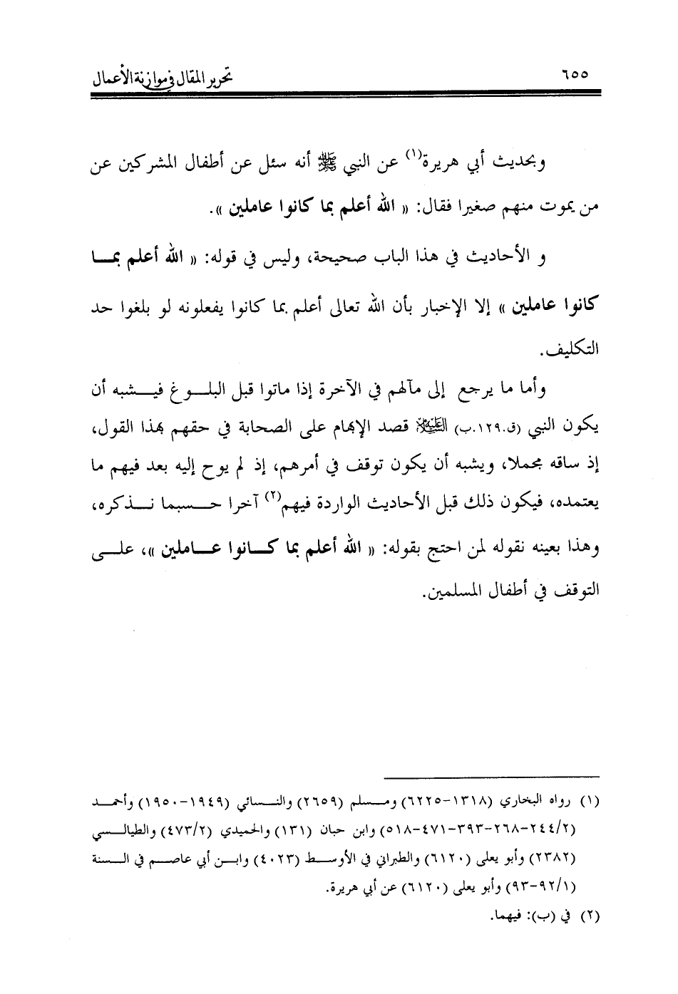 كتاب تحرير المقال في موازنة الأعمال وحكم غير المكلفين في العقبى والمآل (اسم الجزء: 2)