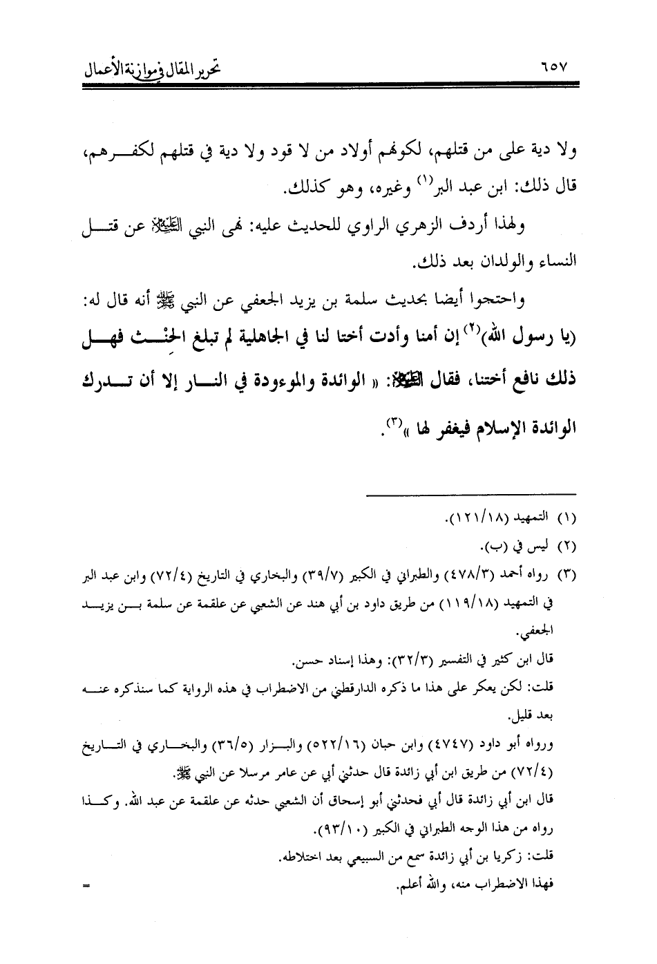 (¬3) رواه أحمد (3/ 478) والطبراني في الكبير (7/ 39) والبخاري في التاريخ (4/ 72) وابن عبد البر في التمهيد (18/ 119) من طريق داود بن أبي هند عن الشعبي عن علقمة عن سلمة بن يزيد الجعفي.