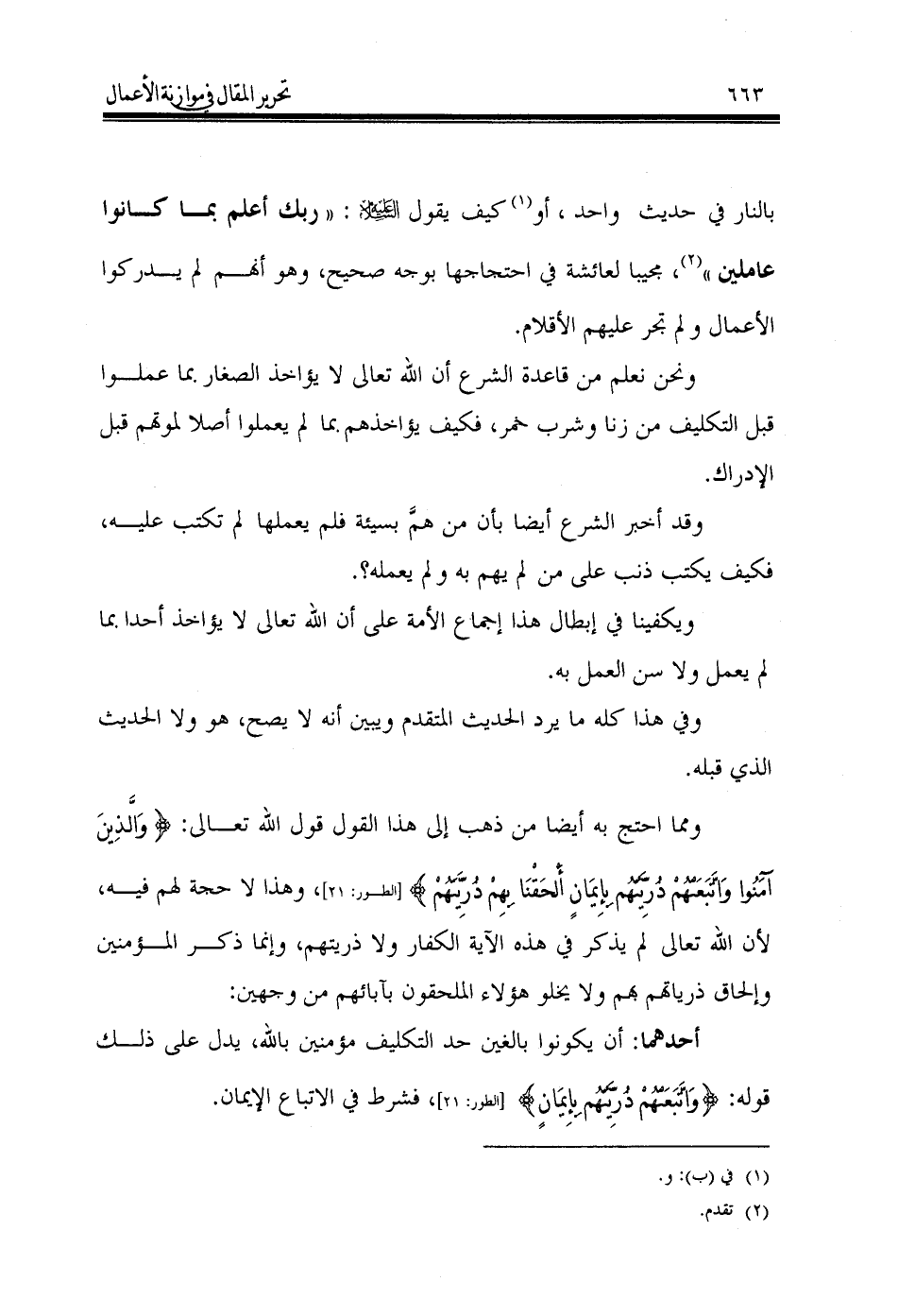 كتاب تحرير المقال في موازنة الأعمال وحكم غير المكلفين في العقبى والمآل (اسم الجزء: 2)