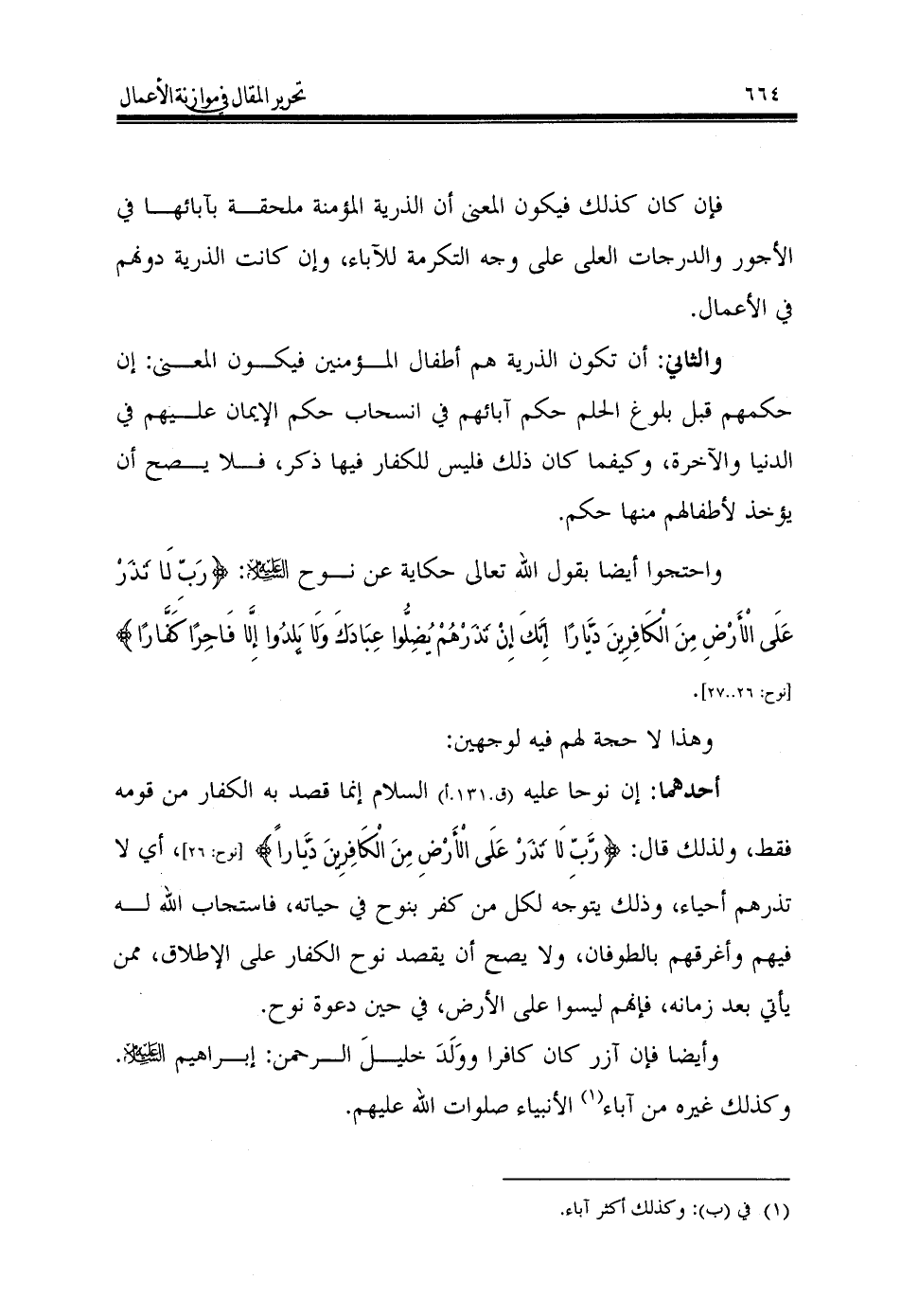 كتاب تحرير المقال في موازنة الأعمال وحكم غير المكلفين في العقبى والمآل (اسم الجزء: 2)