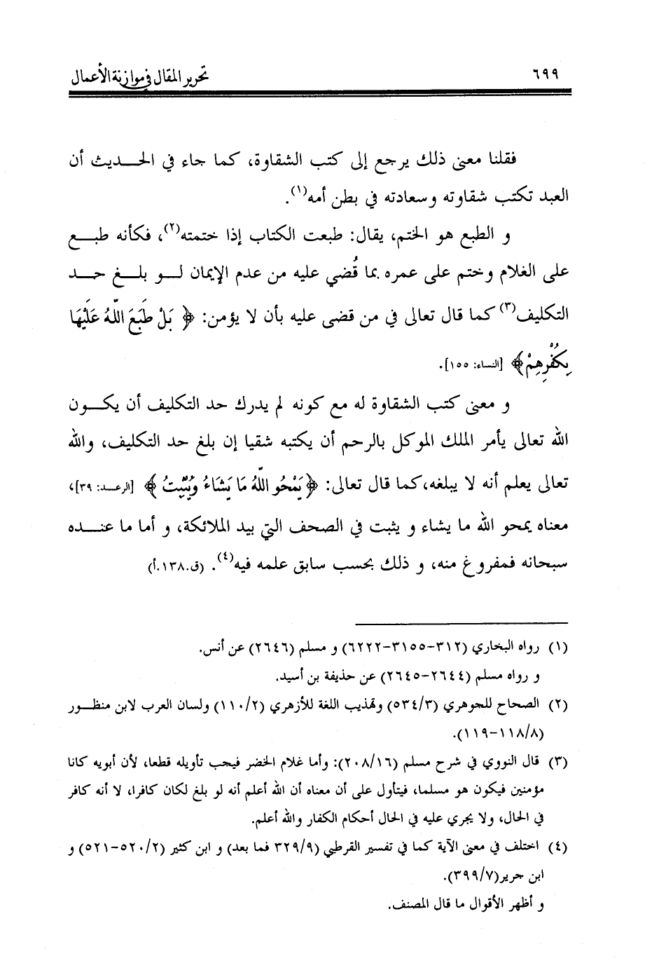 كتاب تحرير المقال في موازنة الأعمال وحكم غير المكلفين في العقبى والمآل (اسم الجزء: 2)