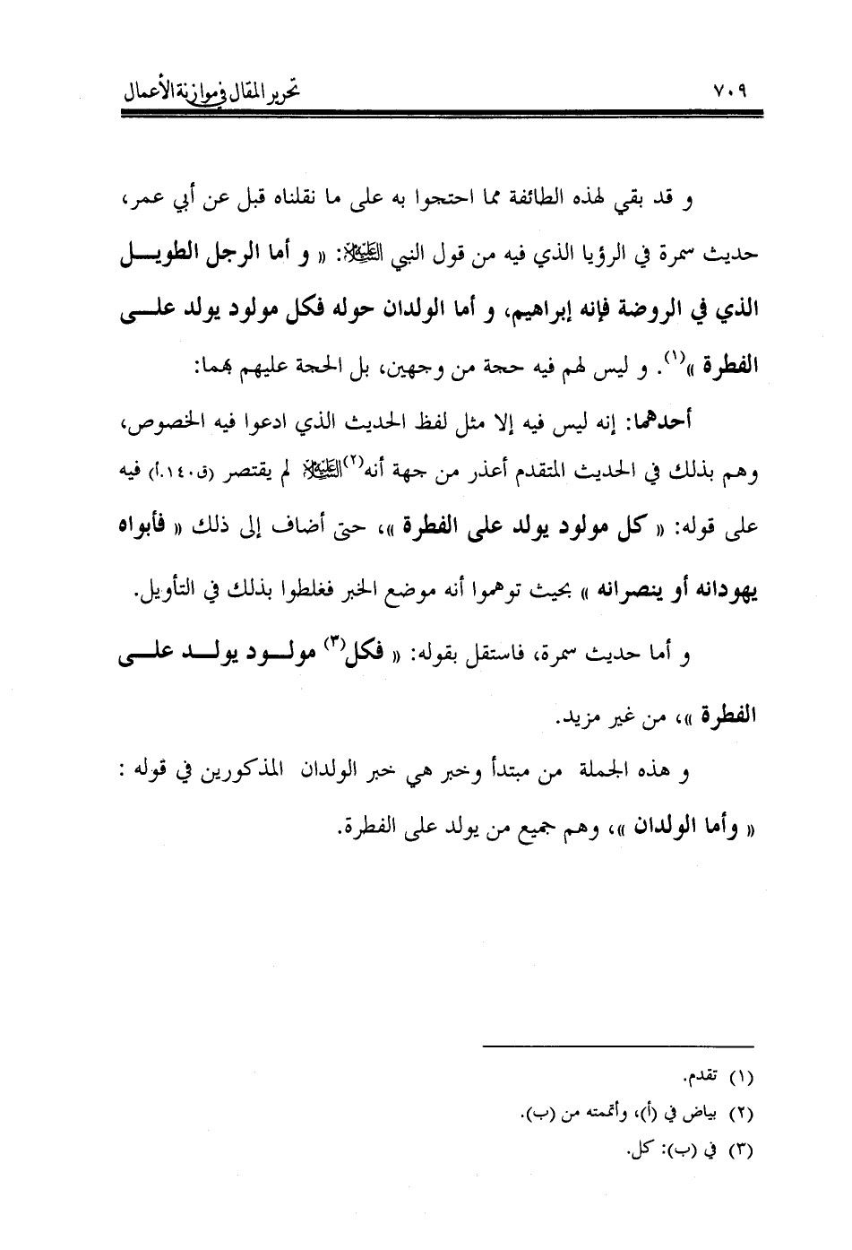 كتاب تحرير المقال في موازنة الأعمال وحكم غير المكلفين في العقبى والمآل (اسم الجزء: 2)