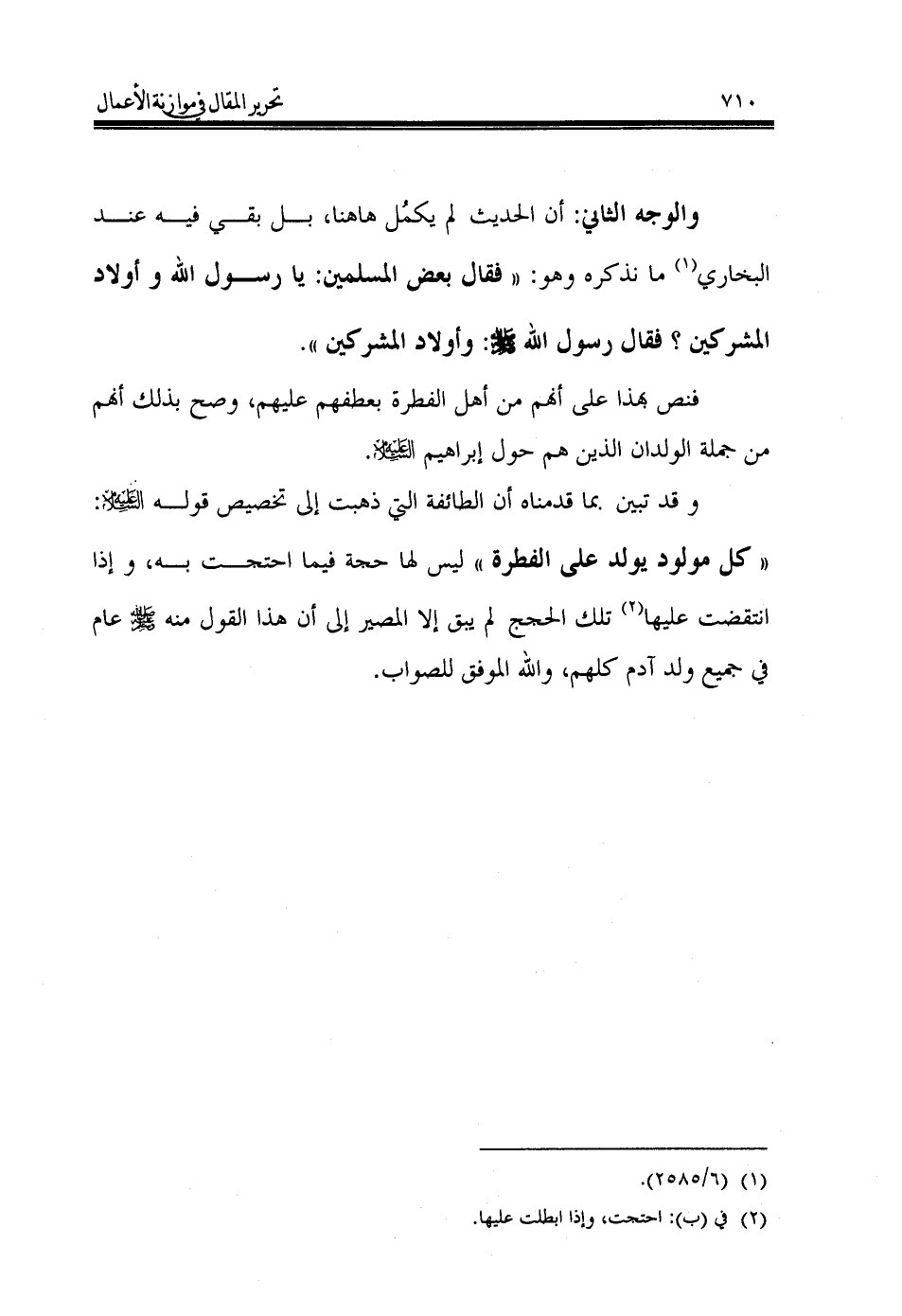 كتاب تحرير المقال في موازنة الأعمال وحكم غير المكلفين في العقبى والمآل (اسم الجزء: 2)