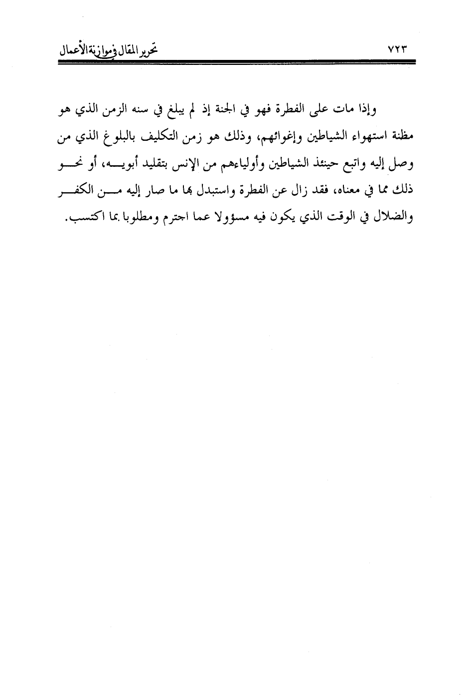 كتاب تحرير المقال في موازنة الأعمال وحكم غير المكلفين في العقبى والمآل (اسم الجزء: 2)