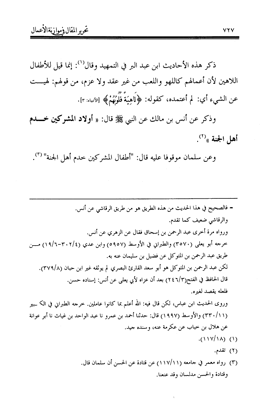 كتاب تحرير المقال في موازنة الأعمال وحكم غير المكلفين في العقبى والمآل (اسم الجزء: 2)