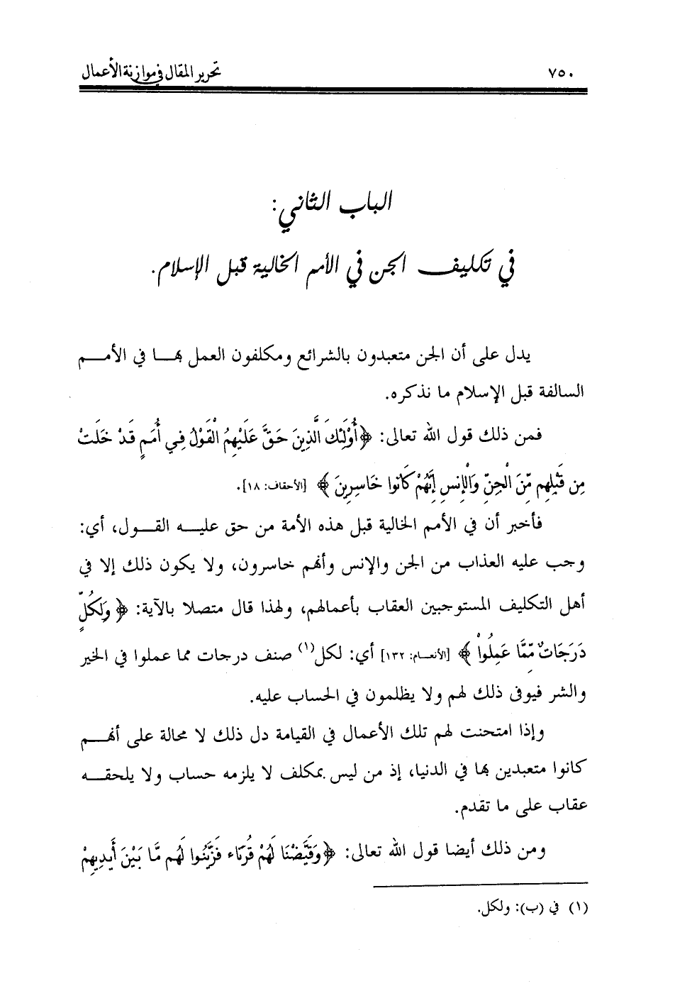 الباب الثاني: في تكليف الجن في الأمم الخالية قبل الإسلام.
