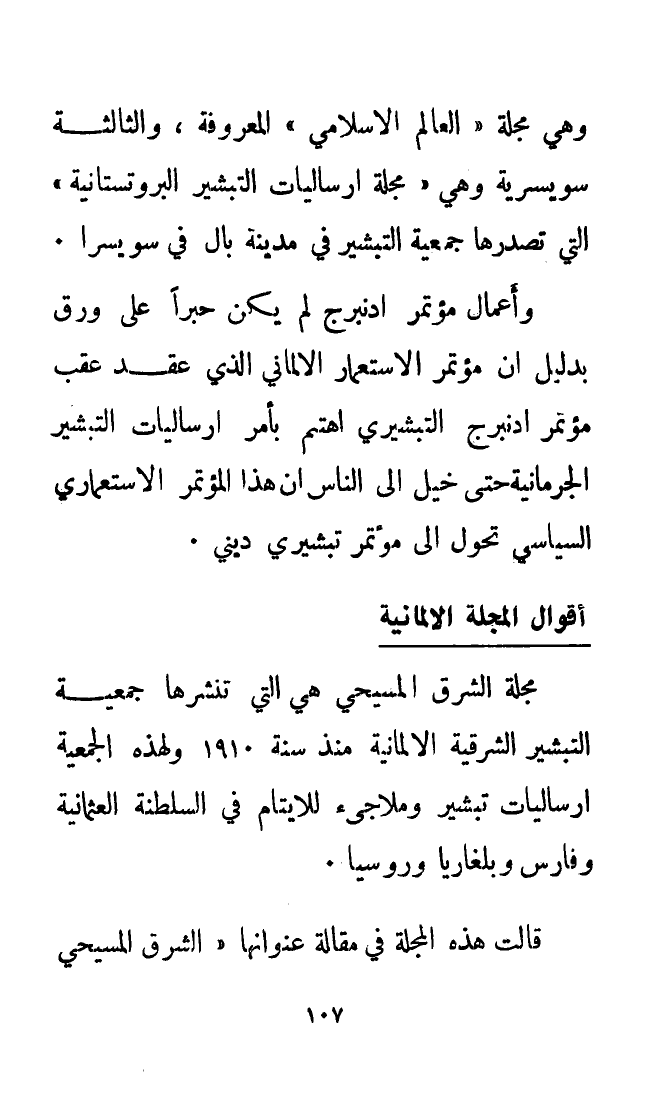 وهي "مجلة العالم الإسلامي" المعروفة، والثالثة سويسرية وهي " مجلة إرساليات التبشير البروتستانية " التي تصدرها جمعية التبشير في مدينة بَالْ في سويسرا.