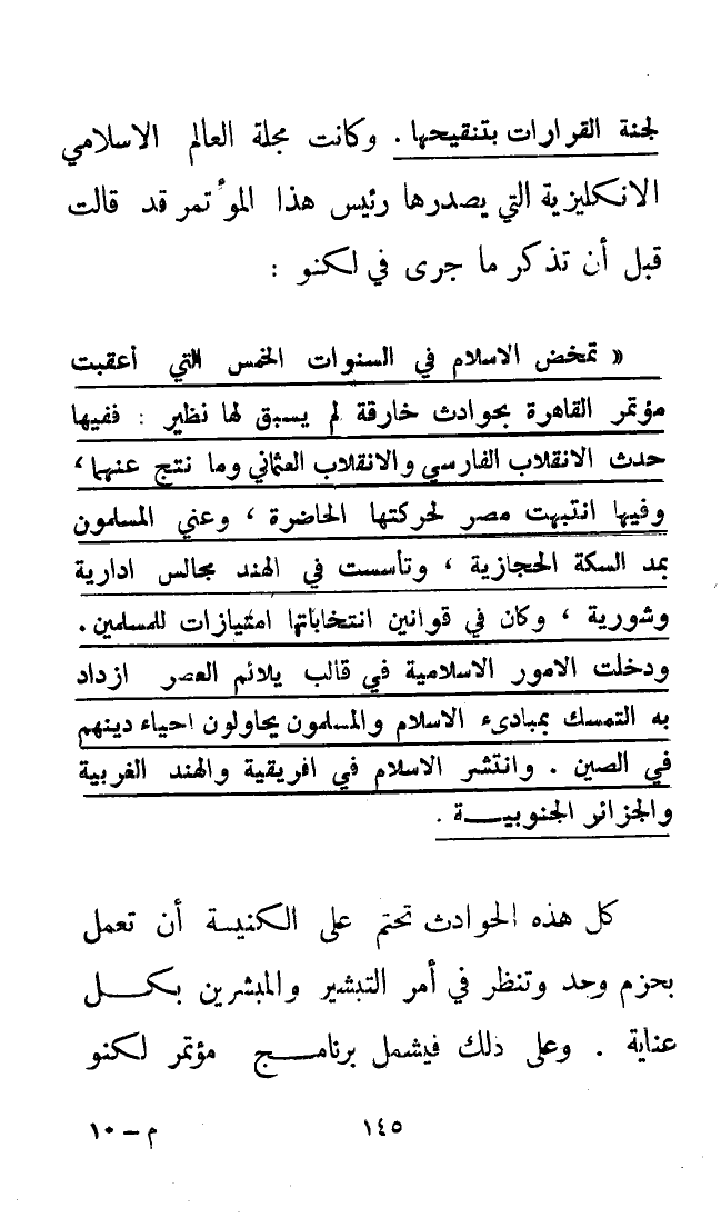 لجنة القرارات بتنقيحها. وكانت مجلة " العالم الإسلامي " الإنكليزية التي يصدرها رئيس هذا المؤتمر قد قالت قبل أن تذكر ما جرى في لكنو: