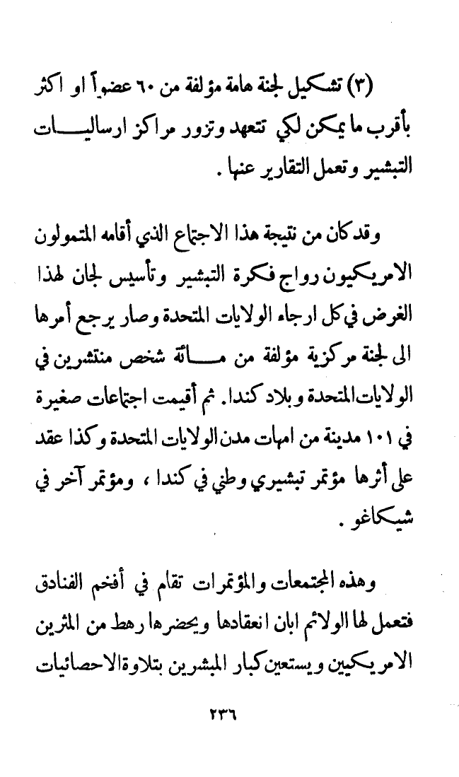 3 - تشكيل لجنة هامة مؤلفة من 60 عُضْوًا أو أكثر بأقرب ما يمكن لكي تتعهد وتزور مراكز إرساليات التبشير وتعمل التقارير عنها.