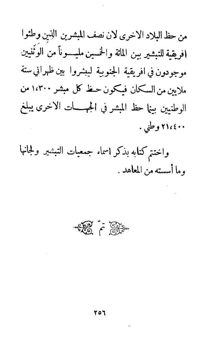واختتم كتابه بذكر أسماء جمعيات التبشير ولجانها وما أسسته من المعاهد.