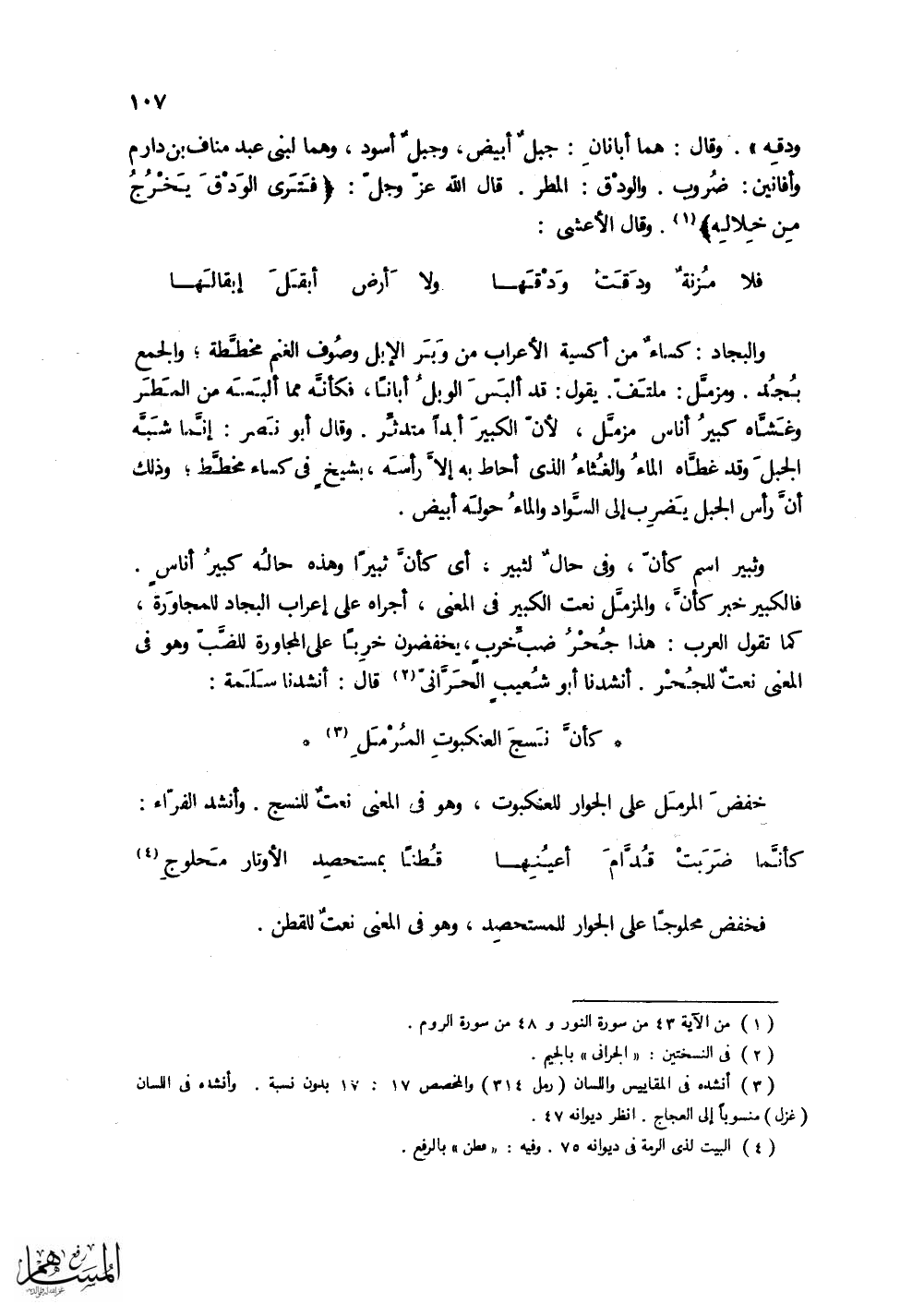 وهما لبني عبد مناف بن دارم. وأفانين: ضروب. والودق: المطر. قال الله عز وجل: (فَتَرى الوَدْقَ