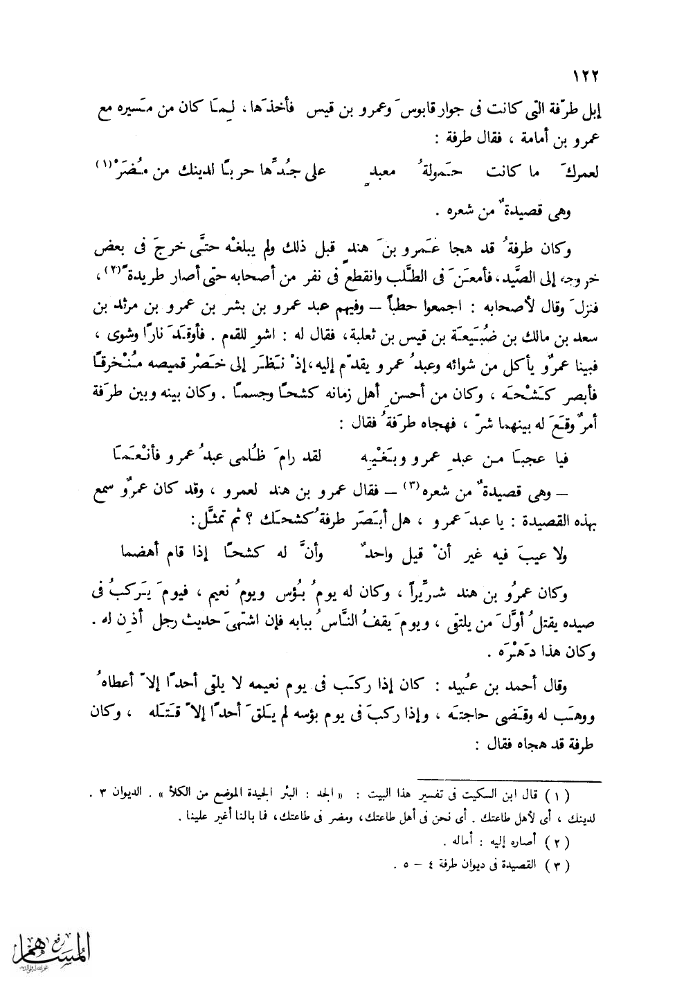 وعمرو بن قيس فأخذها، لما كان من مسيره مع عمرو بن أمامة، فقال طرفة: