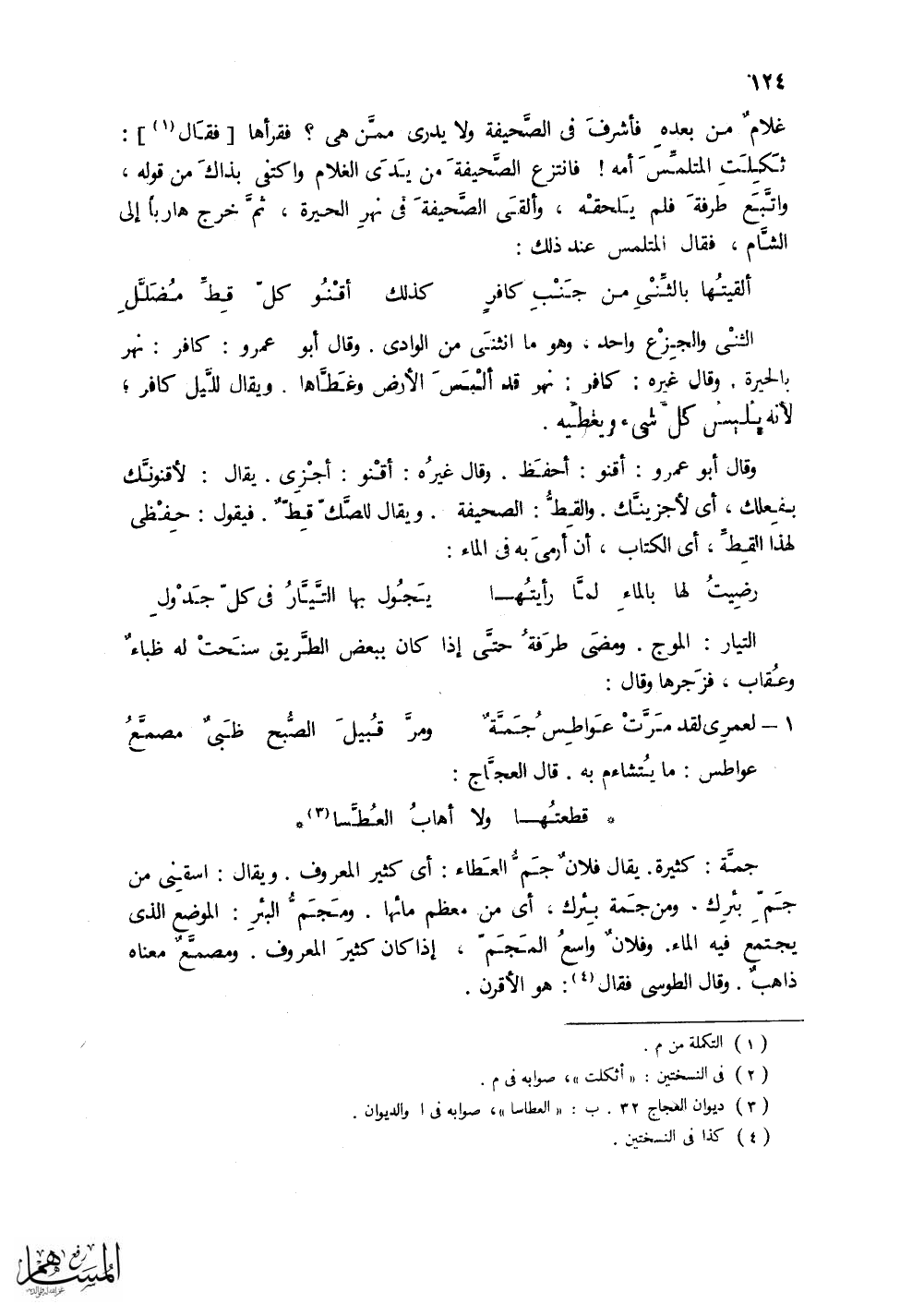 (لعمرِي لقد مَرَّتْ عَواطِسٌ جمّة ... ومرَّ قُبيلَ الصُّبح ظَبيٌ مصمَّعُ)