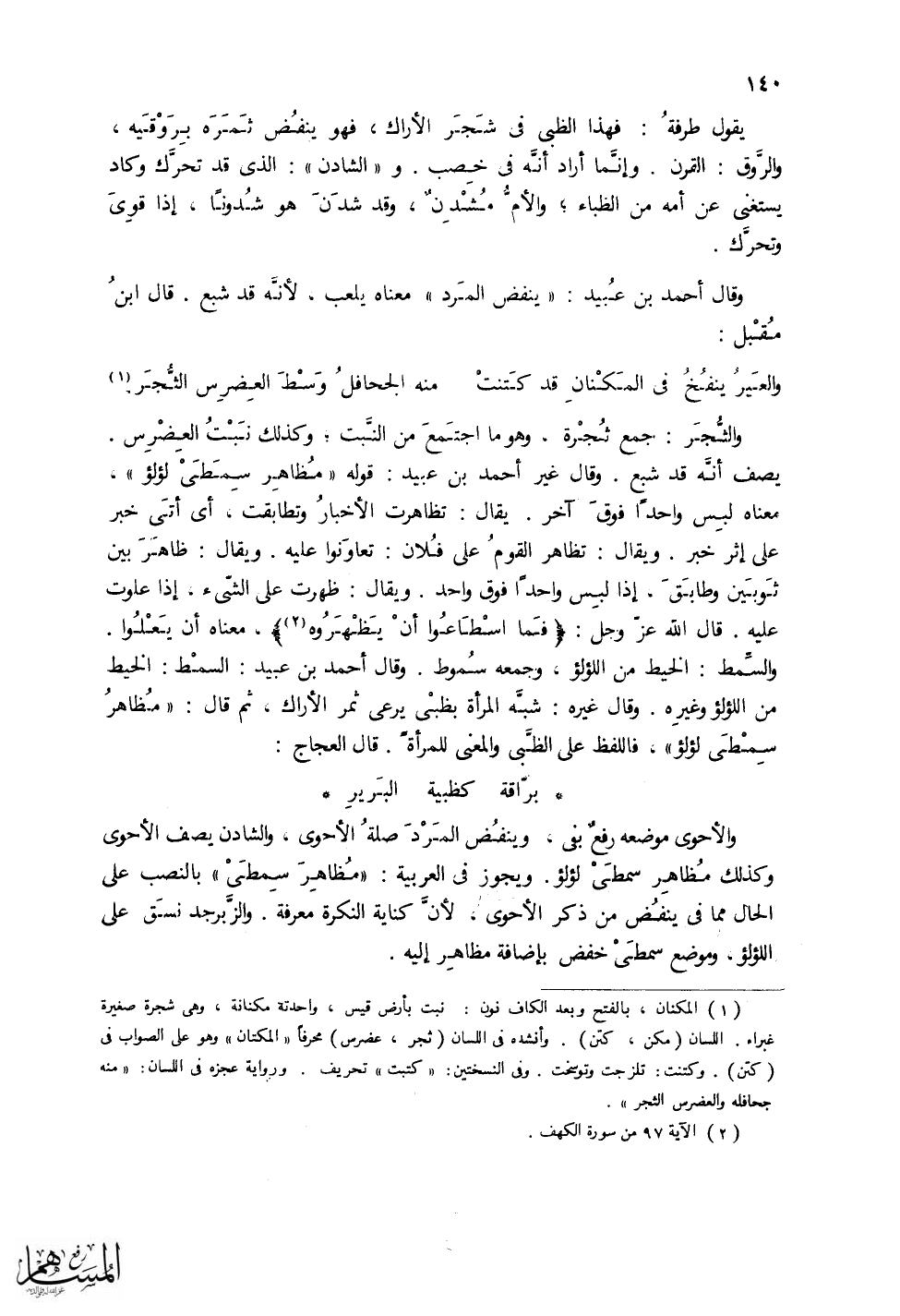 والاحوى موضعه رفع بفي، وينفض المرد صلة الاحوى، والشادن يصف الاحوى وكذلك مظاهر