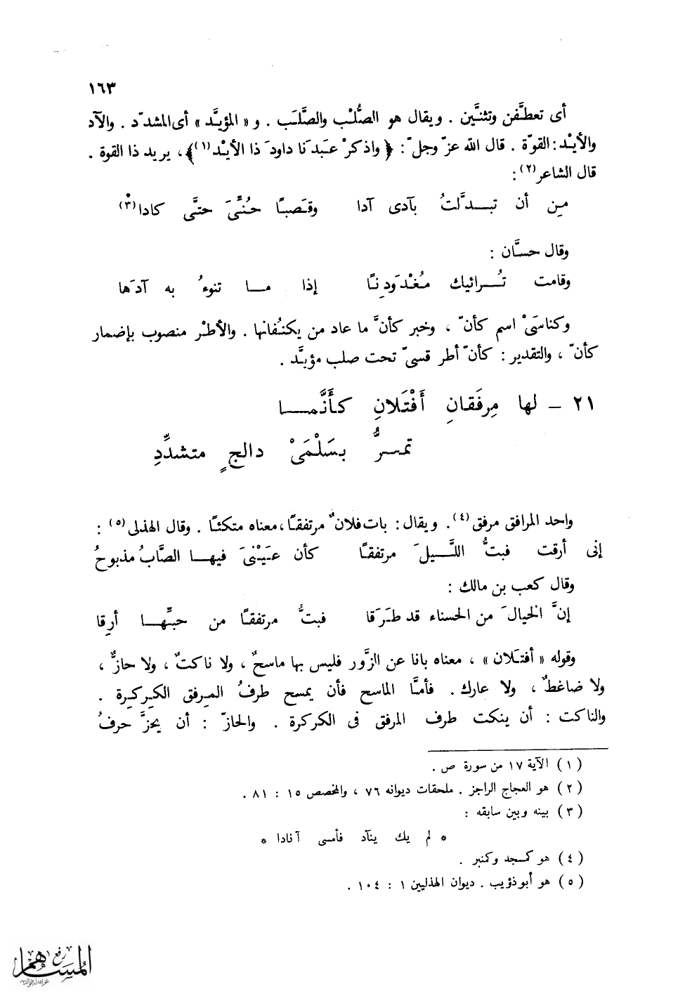 أي تعطفن وتثنين. ويقال هو الصُّلْب والصَّلَب. و (المؤيَّد) أي المشدد. والآد والأيد: القوة. قال الله