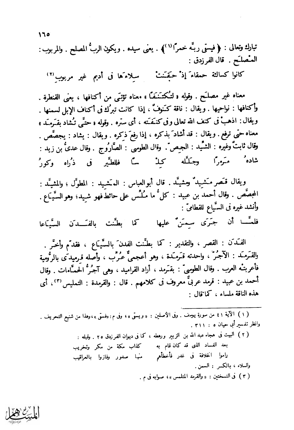 ويقال قصر مشيد ومشيد. قال أبو العباس: المشيد: المطول؛ والمشيد: المجصص. وقال أحمد بن