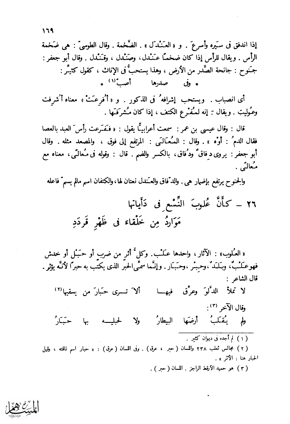 (العلوب): الآثار، واحدها علب. وكل اثر من ضرب أو حبل أو خدش فهو علب، وبلد، وحبر،