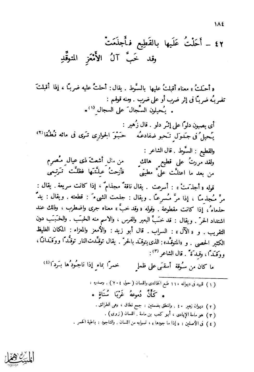 (أَحَلْتُ عَلَيها بالقَطِيع فأَجذمَتْ ... وقد خَبَّ آلُ الأَمْعَزِ المتوقِّدِ)